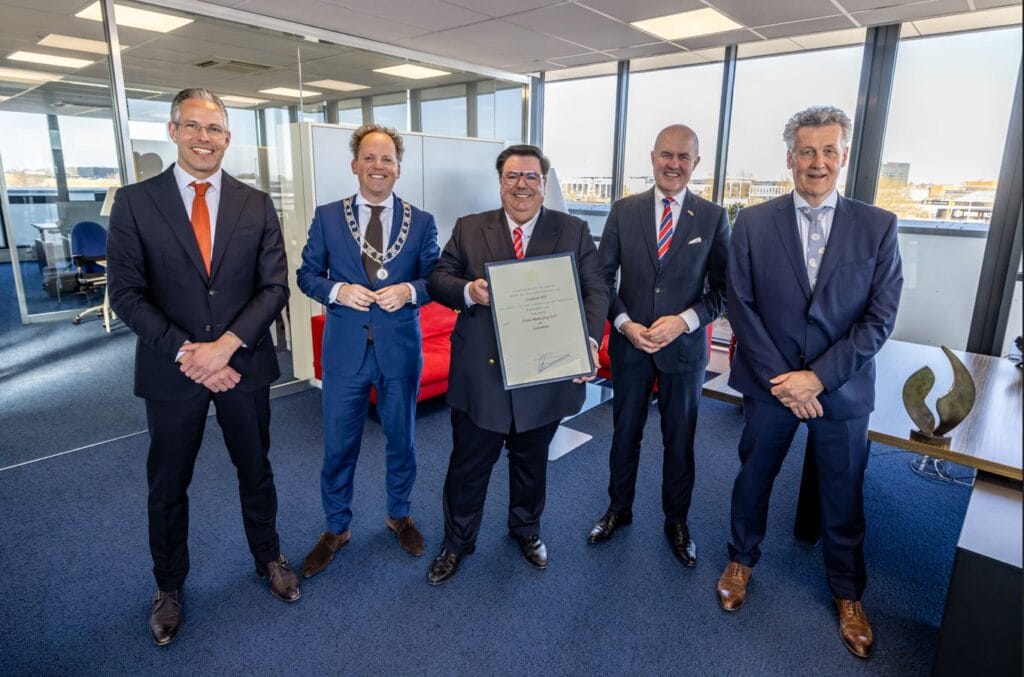 De Commissaris van de Koning van Fryslân – Arno Brok – in het bijzijn van locoburgemeester Abel Reitsma van de gemeente Leeuwarden overhandigde het predicaat namens Koning Willem-Alexander aan CEO Egbert van Hes.